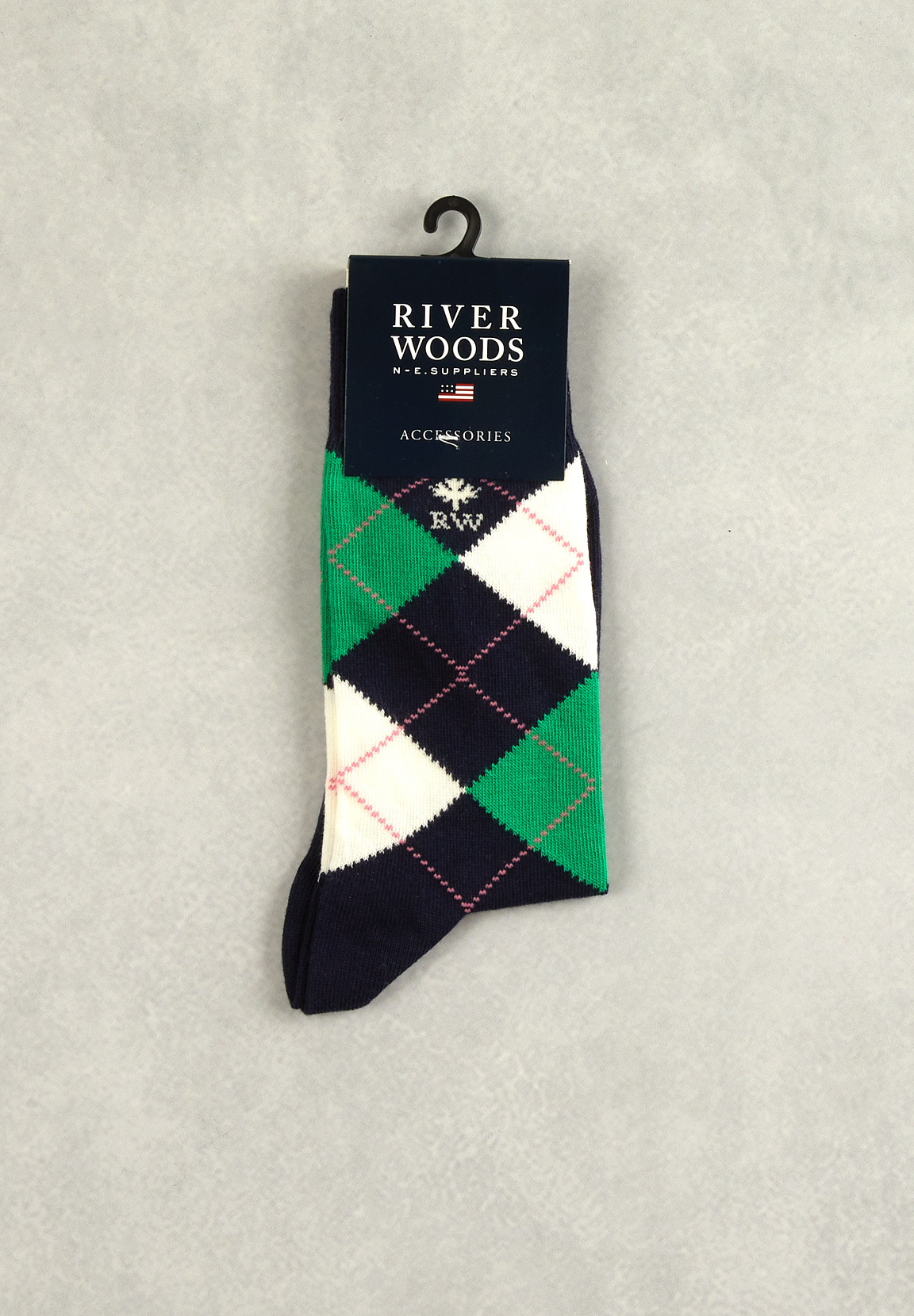 River Woods Boys Checked Cotton Socks Navy/green | Multi