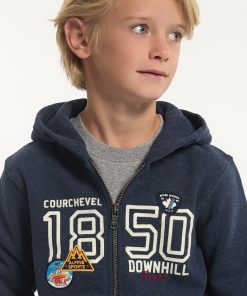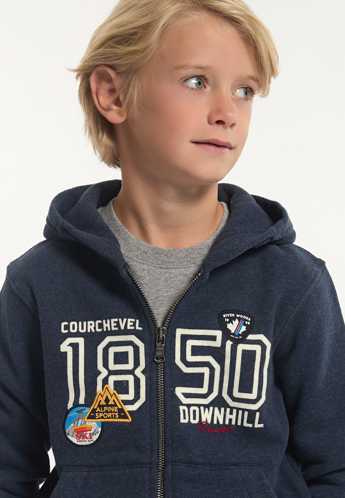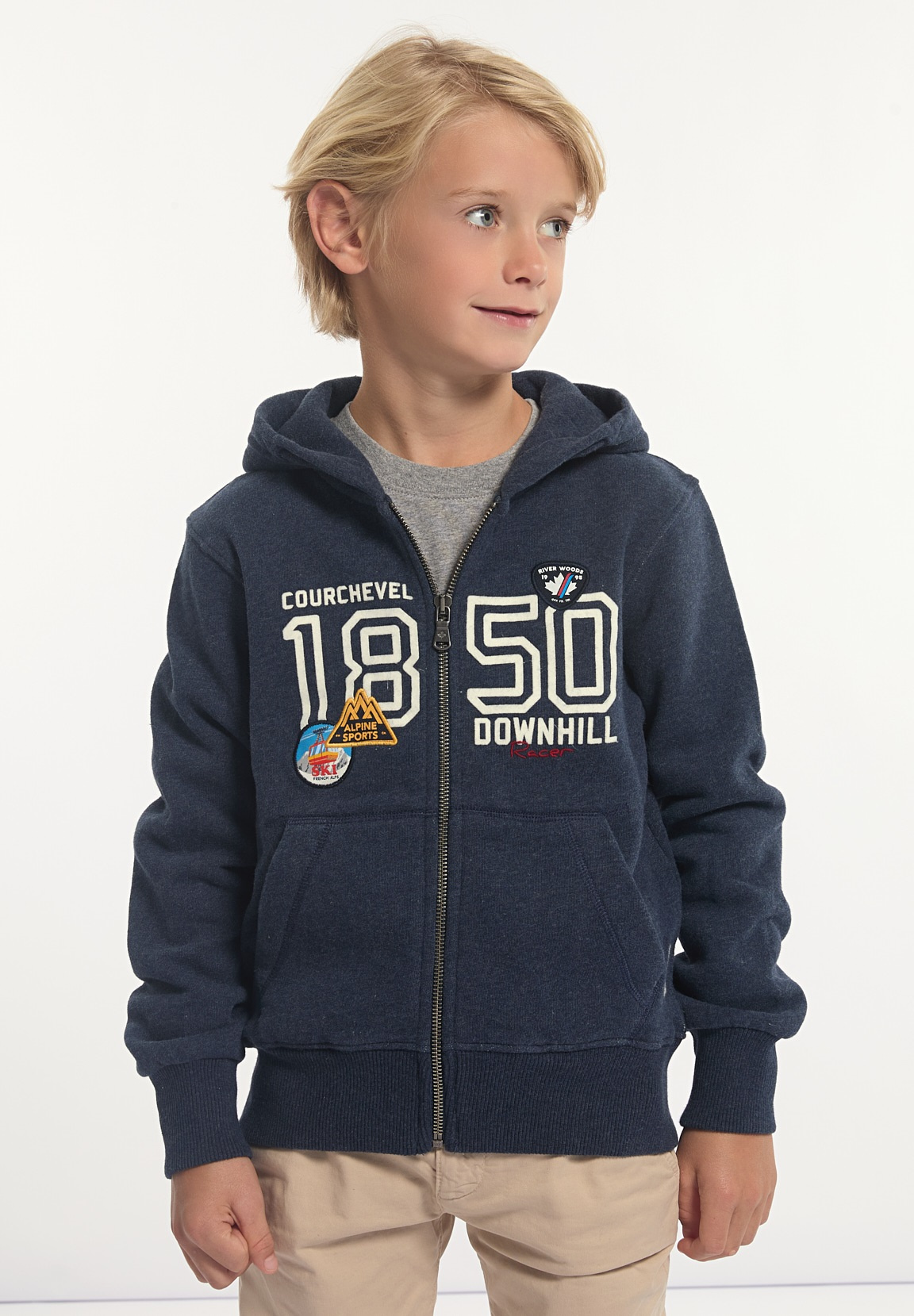 River Woods Boys Cotton Fantasy Hooded Fleece Cardigan Univers Mix | Blue