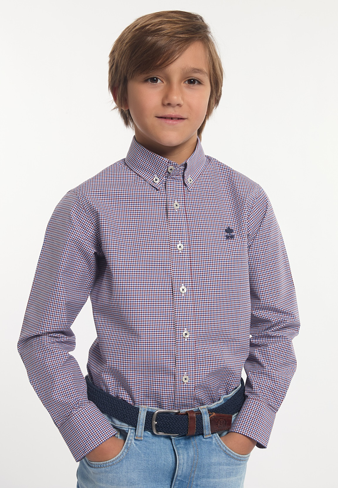 River Woods Boys Custom Fit Cotton Checked Shirt Blue/red | Multi