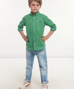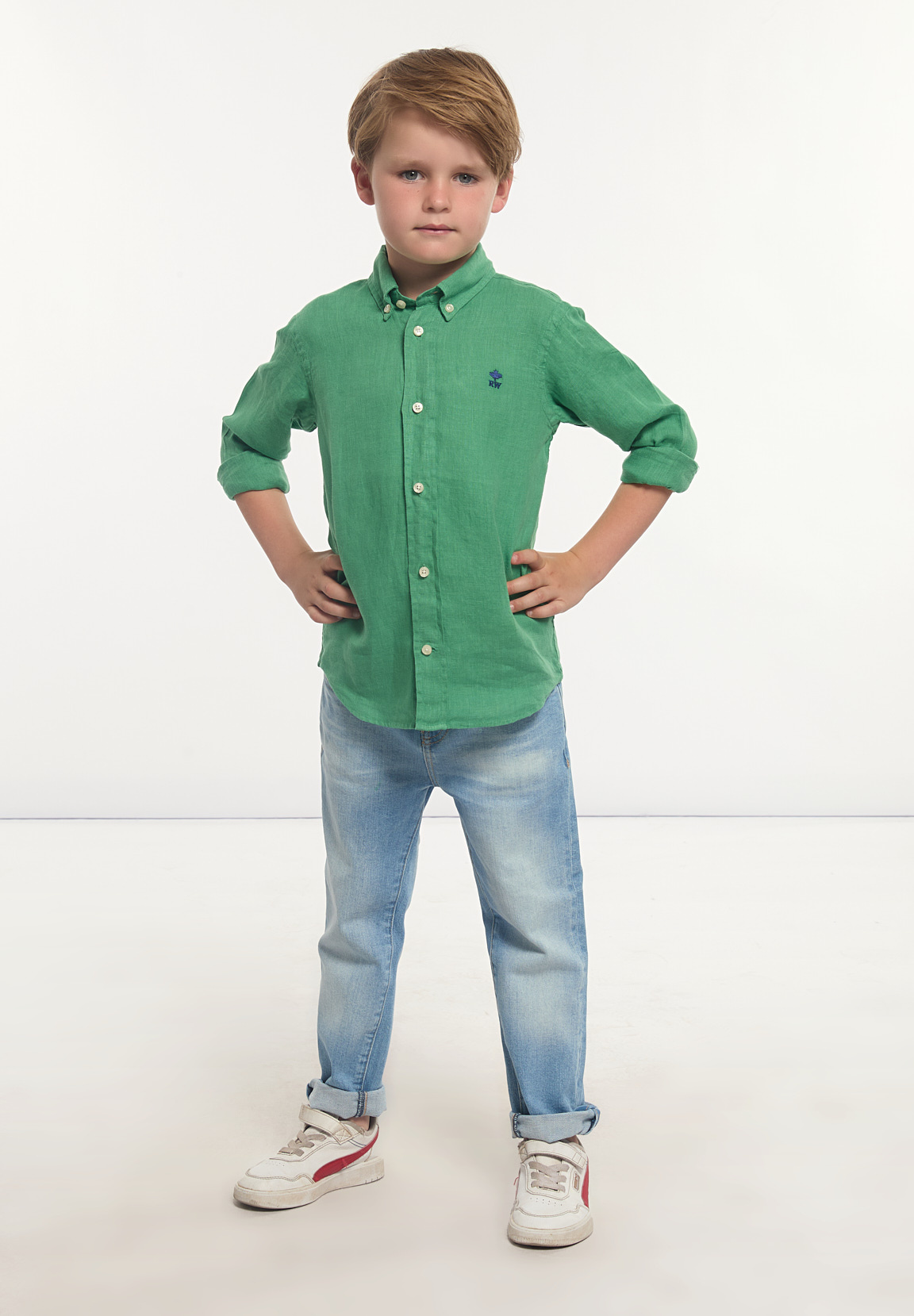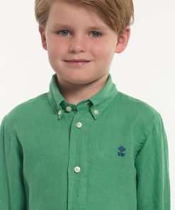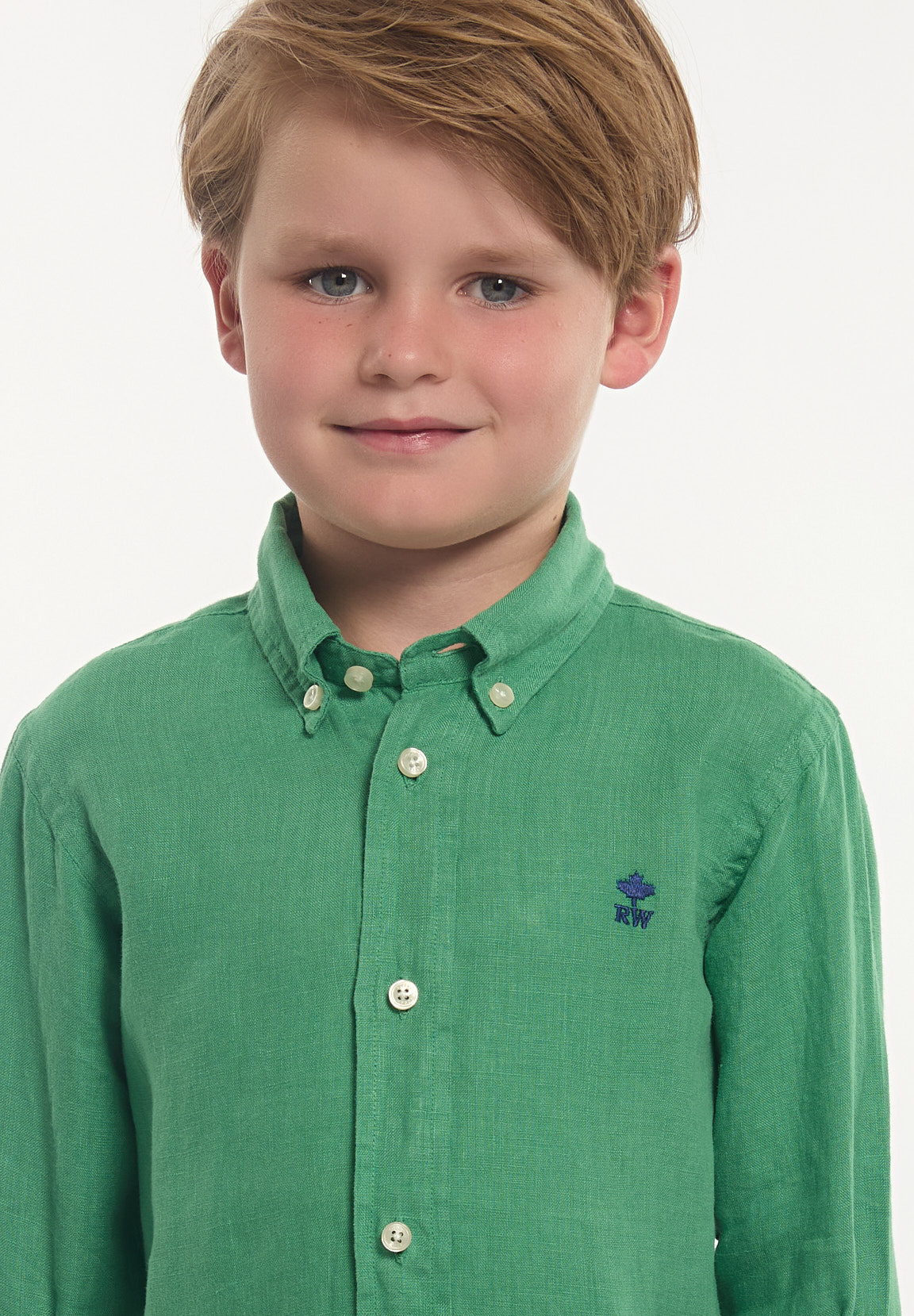 River Woods Boys Custom Fit Linen Shirt Belize Green | Green
