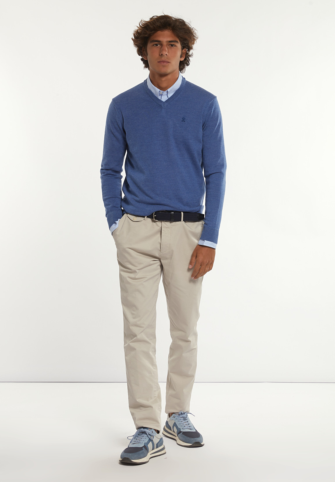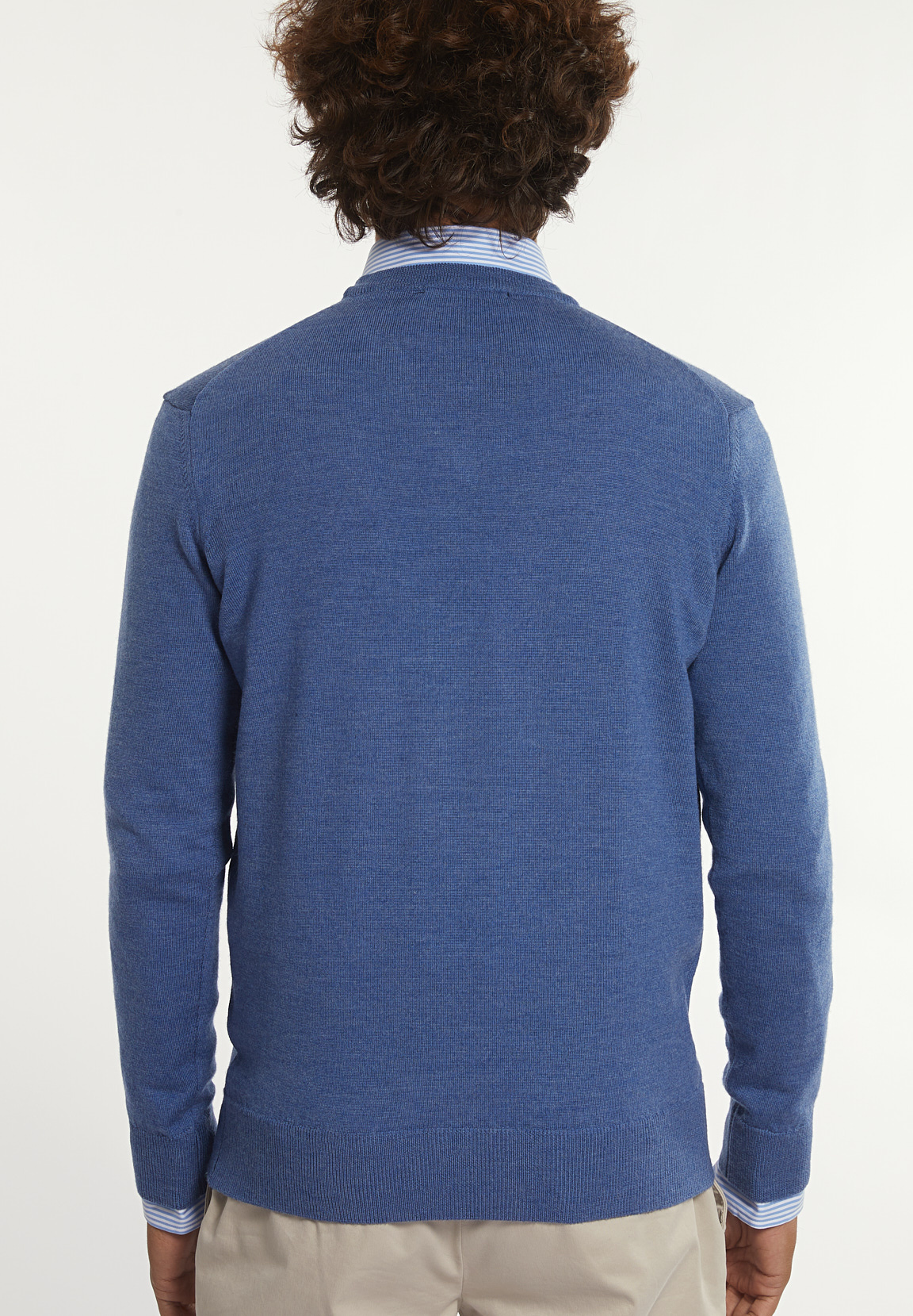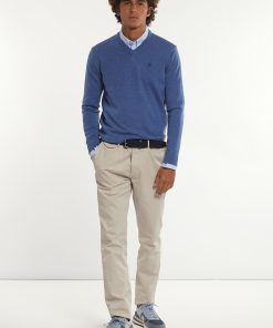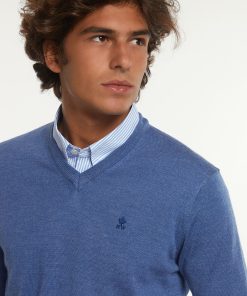 River Woods Men’s Custom Fit Basic Merino V-neck Sweater Dk Persian Blue Mix | Blue