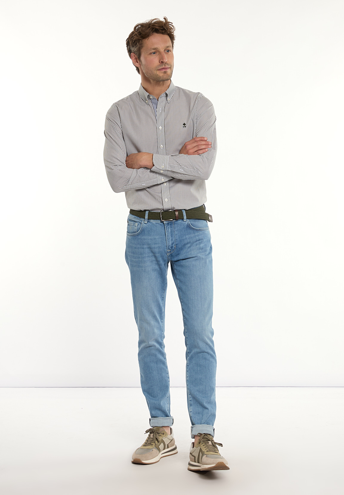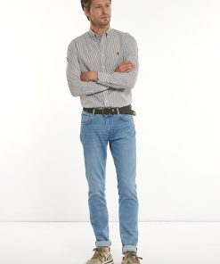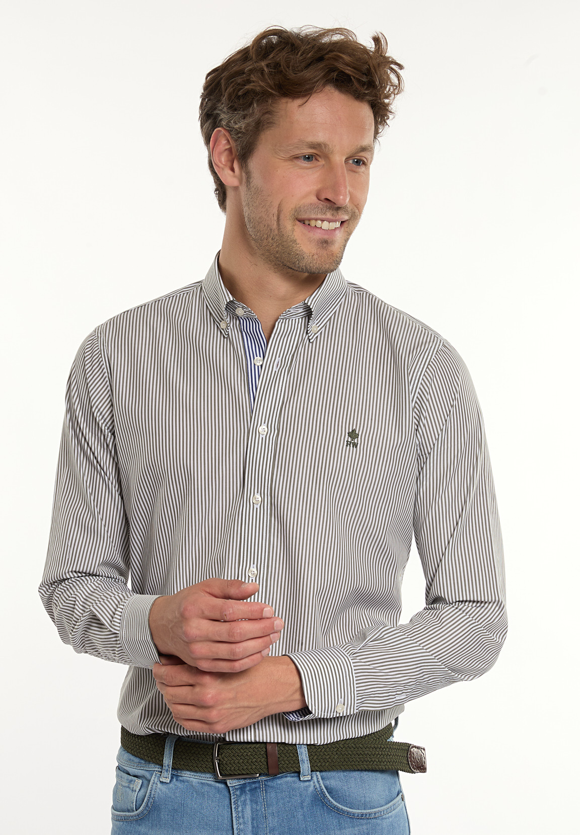 River Woods Men’s Custom Fit Cotton Striped Shirt Khaki/white | Khaki