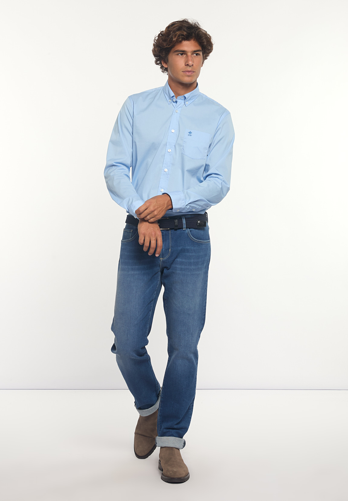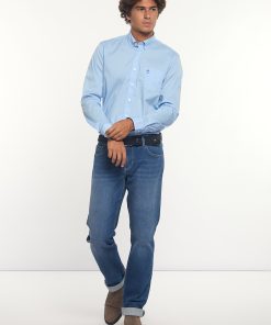 River Woods Men’s Custom Fit Performance Stretch Shirt Chest Pocket Blue | Blue