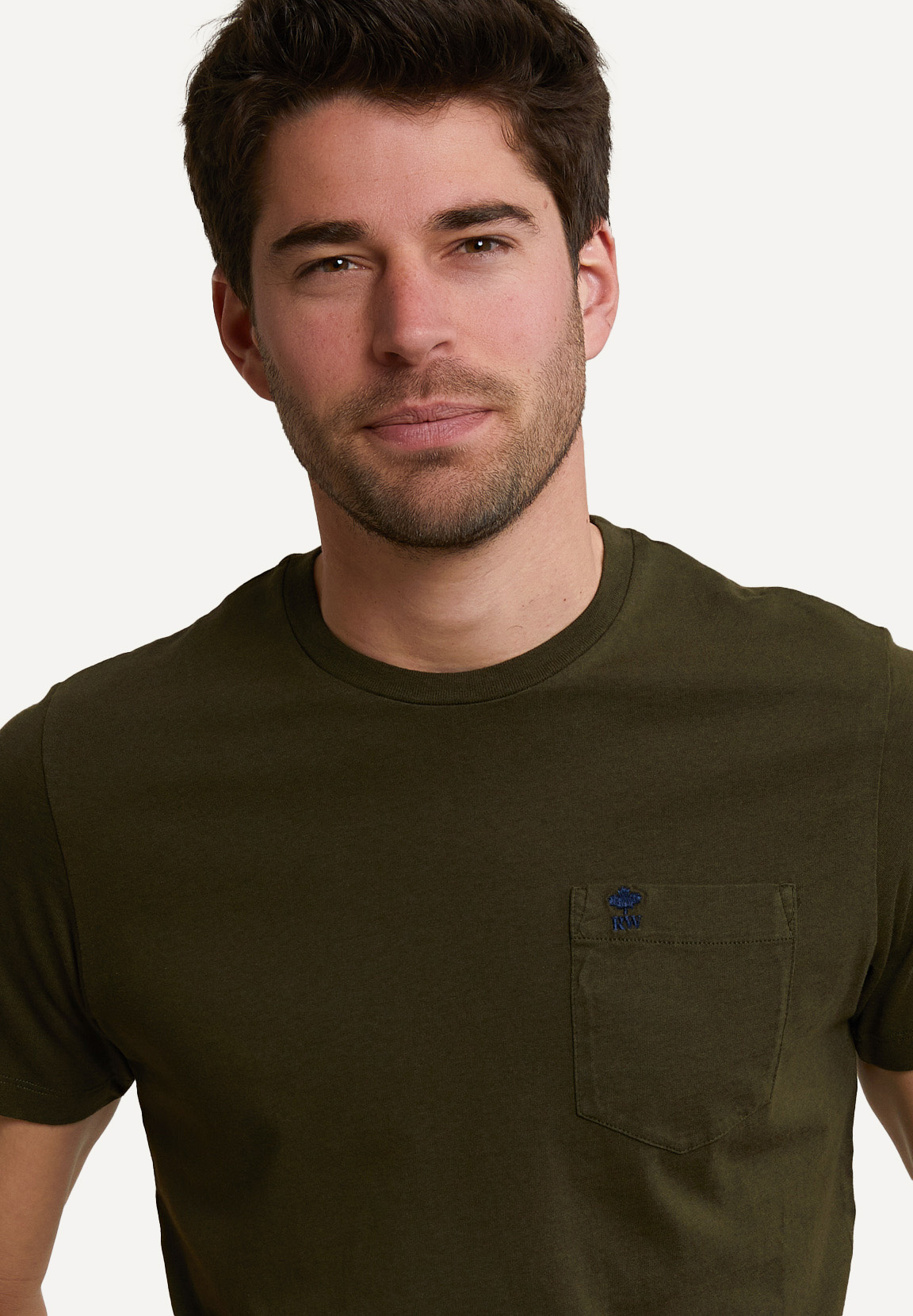 River Woods Men’s Custom Fit Pima Cotton T-shirt Chest Pocket Forest Mix | Khaki