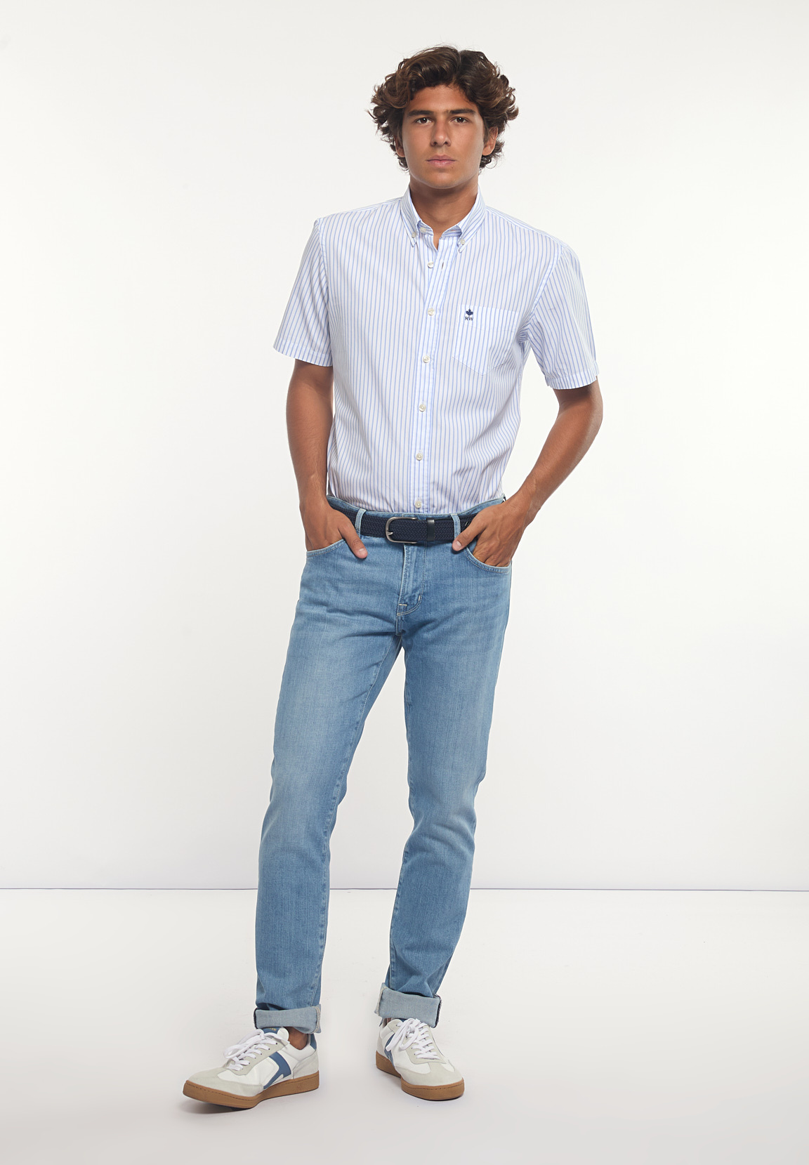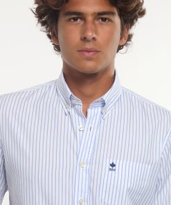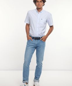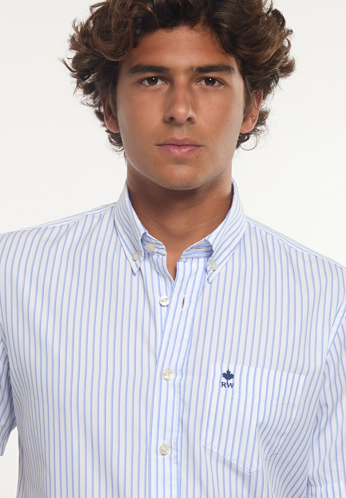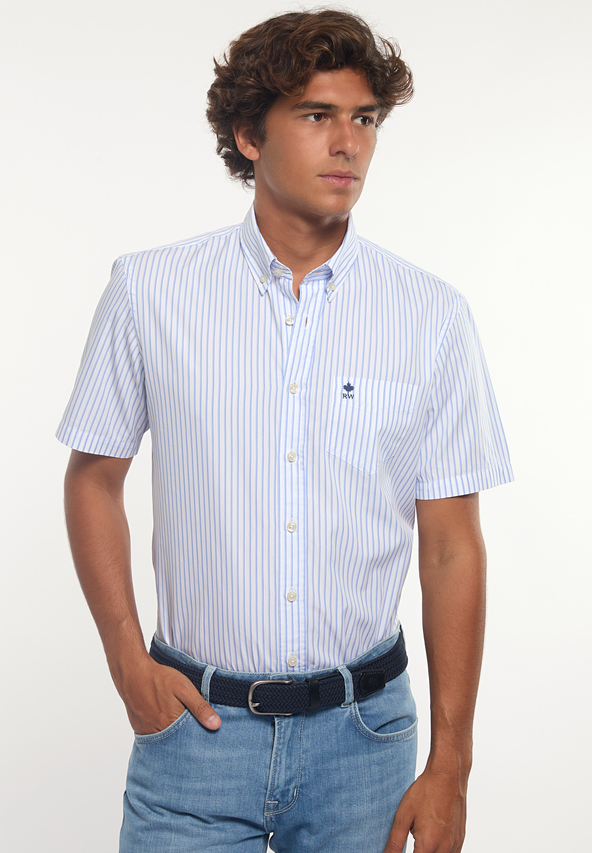 River Woods Men’s Custom Fit Striped Shirt Chest Pocket Short Sleeves Blue/white | Blue