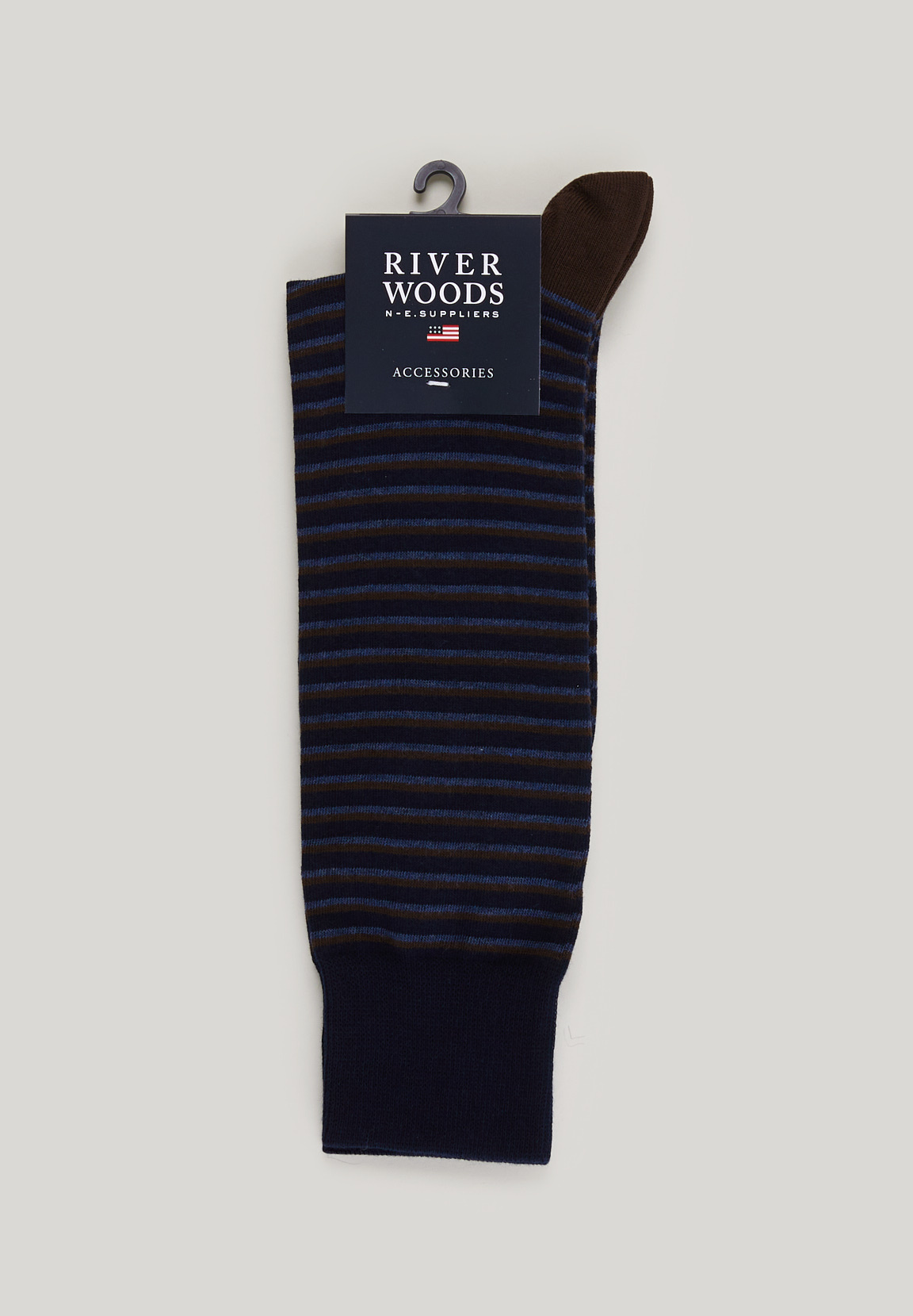 River Woods Men’s Long Striped Cotton Socks Admiral/espresso | Multi