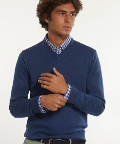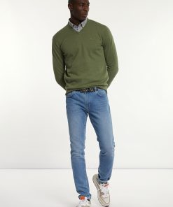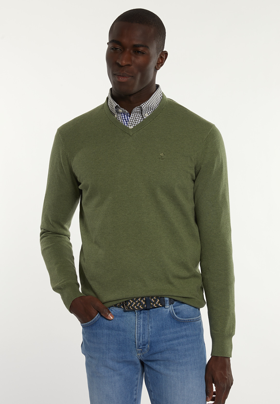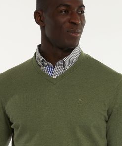 River Woods Men’s Normal Fit Cotton Basic V-neck Sweater Jeep Mix | Khaki