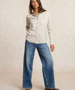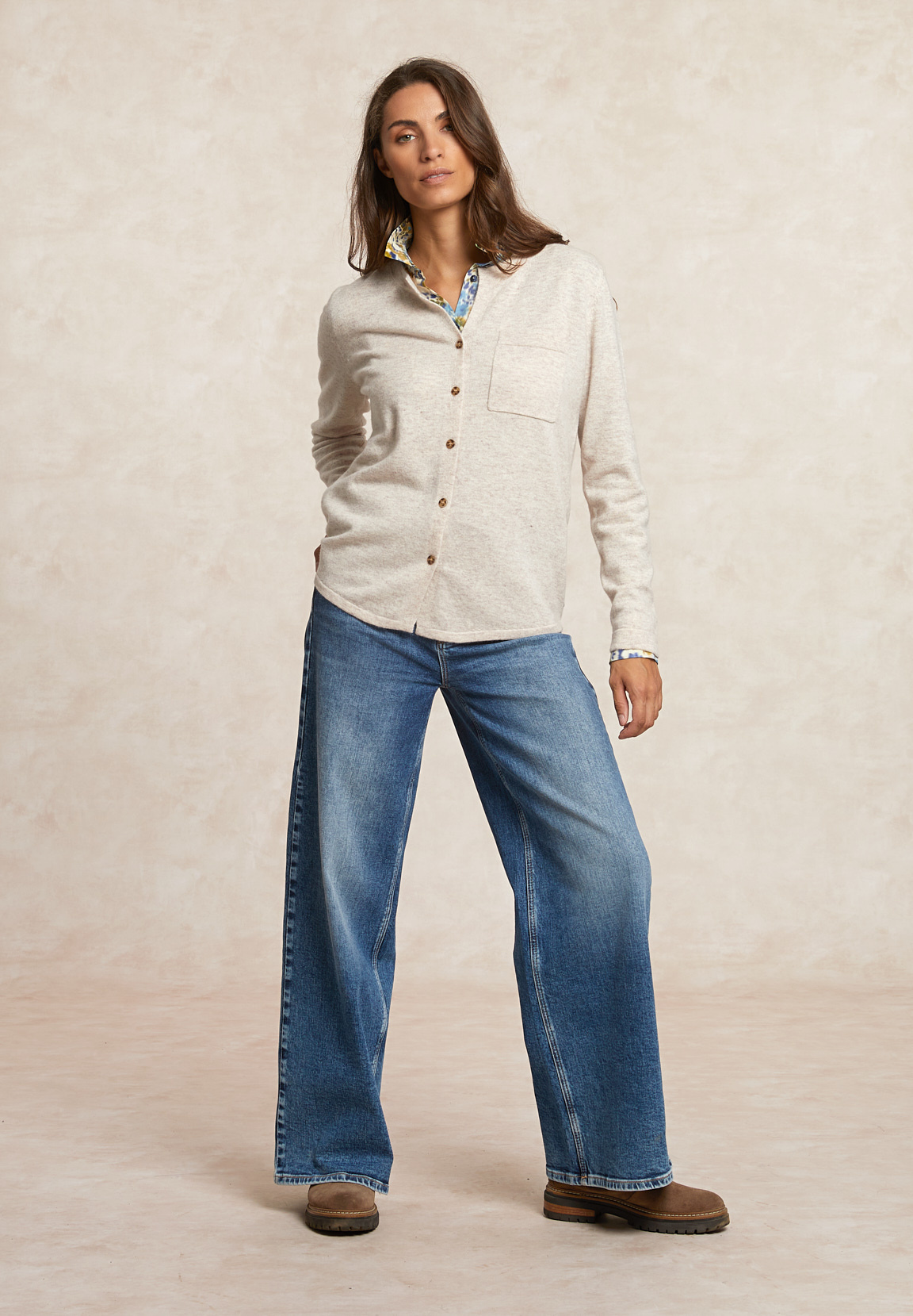 River Woods Women’s Buttoned V-neck Cardigan Chest Pocket Beige | Beige