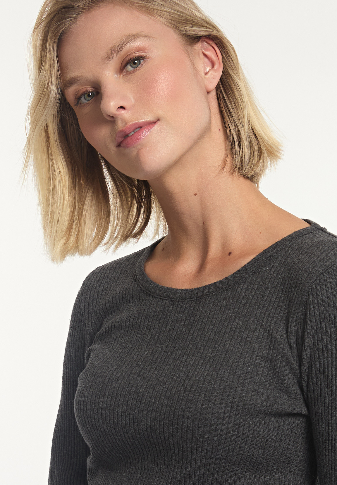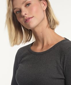 River Woods Women’s Cotton Basic Ribbed Crew Neck T-shirt Grey | Grey