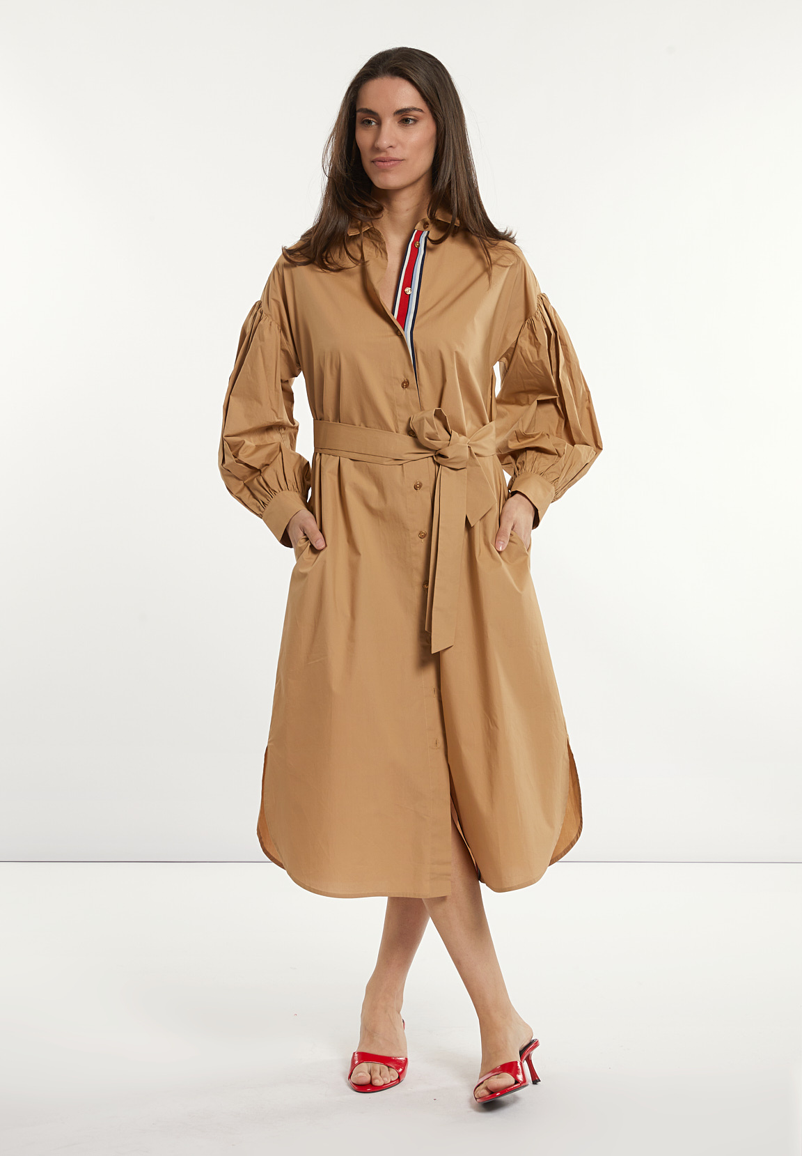 River Woods Women’s Cotton Belted Dress Balloon Sleeves Beige | Beige