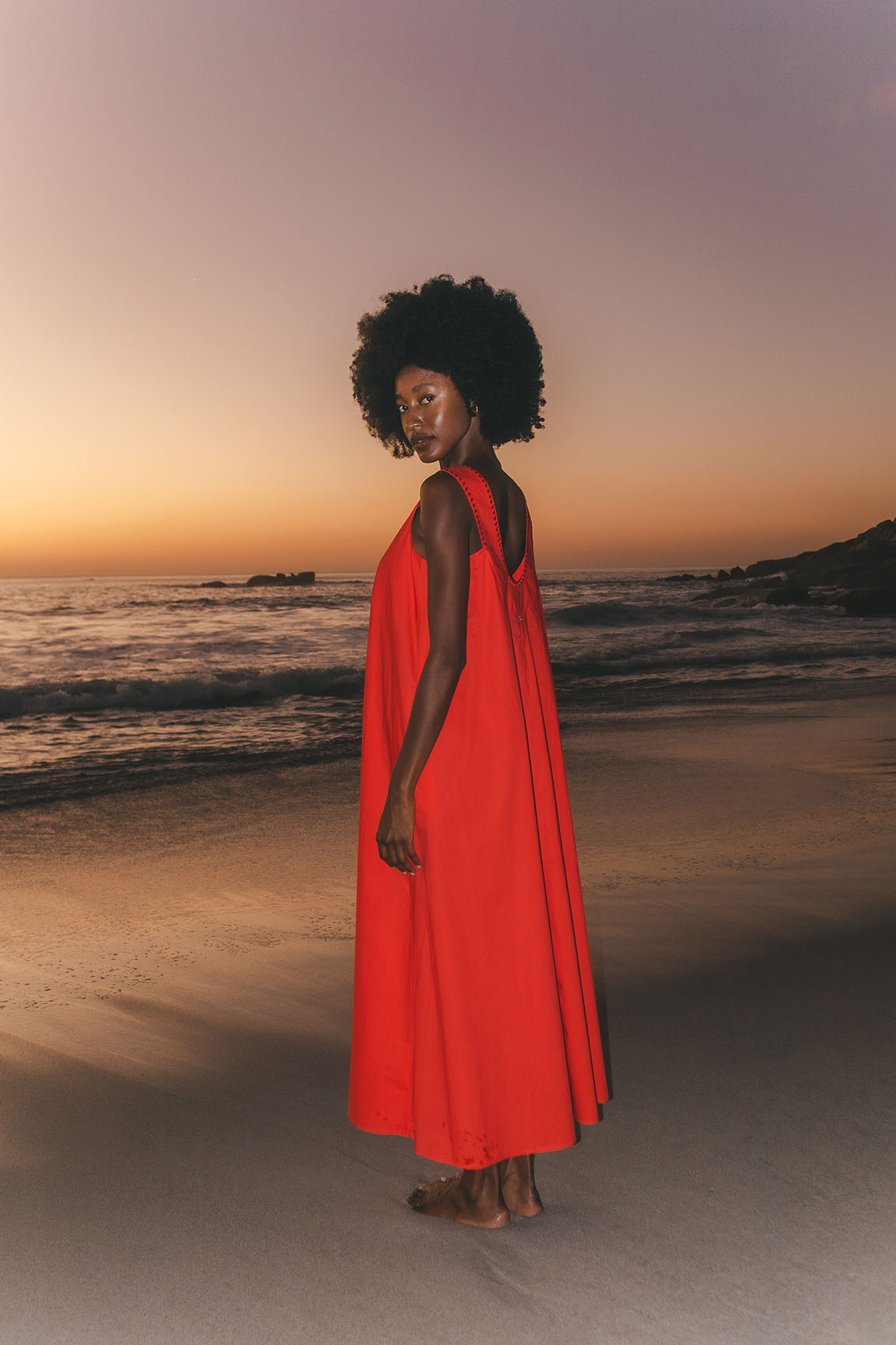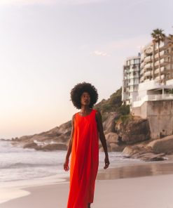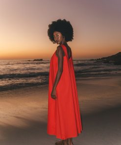 River Woods Women’s Cotton Long Sleeveless Dress Open Back Red | Red