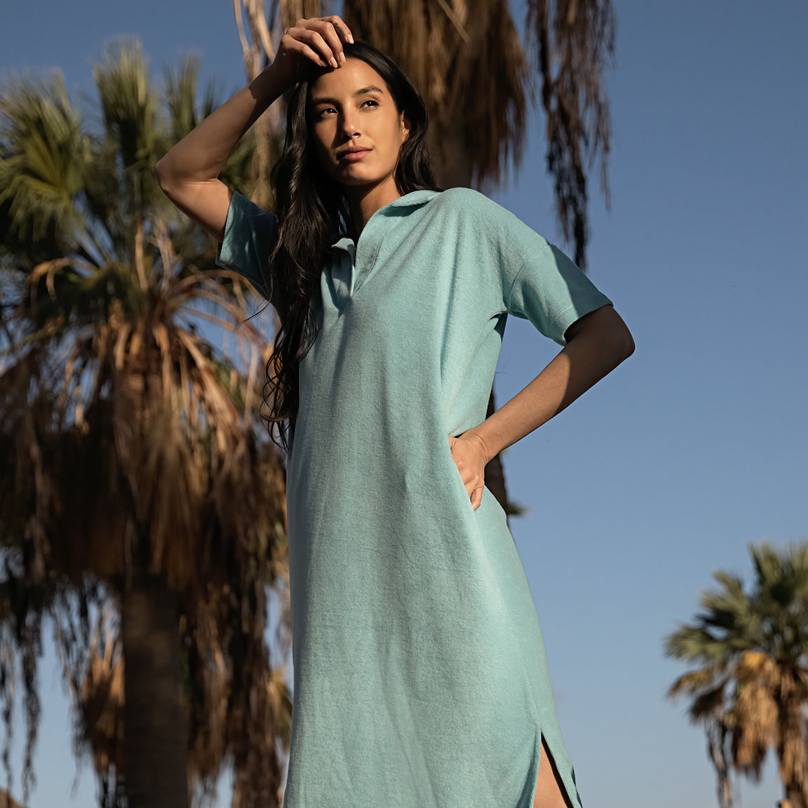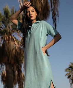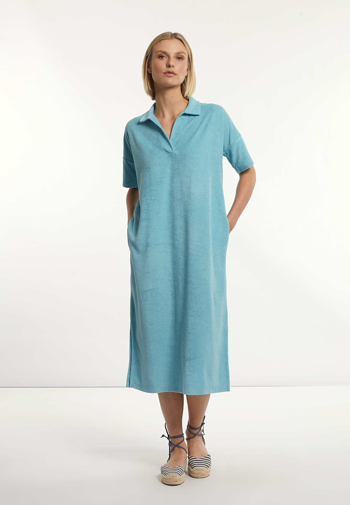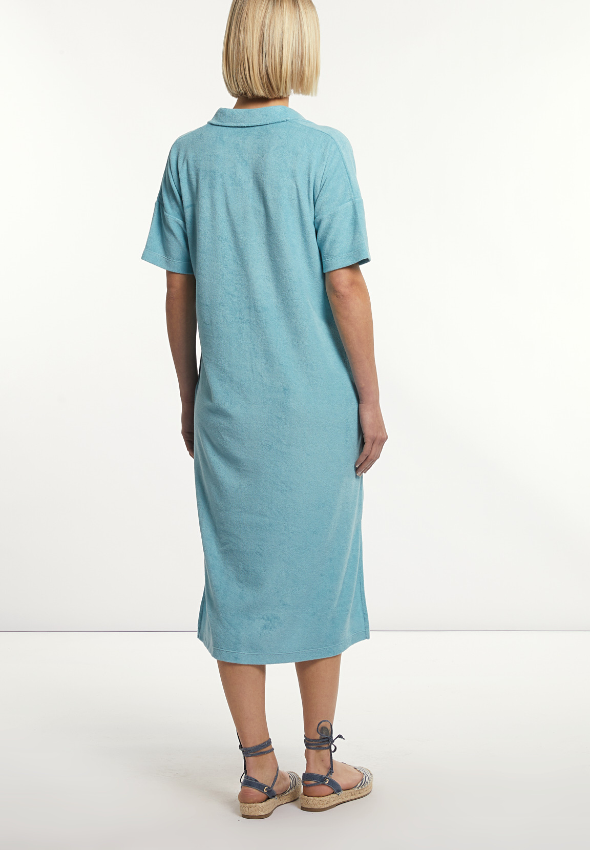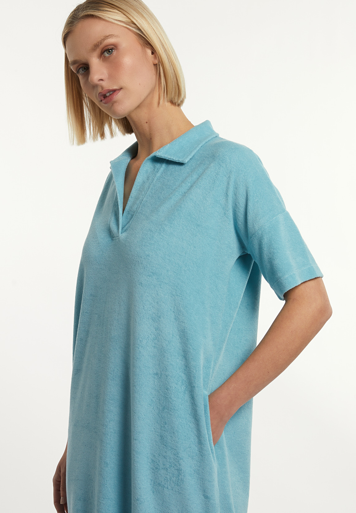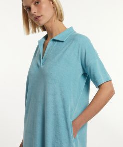 River Woods Women’s Cotton Loose Sponge Polo Dress Short Sleeves Blue | Blue