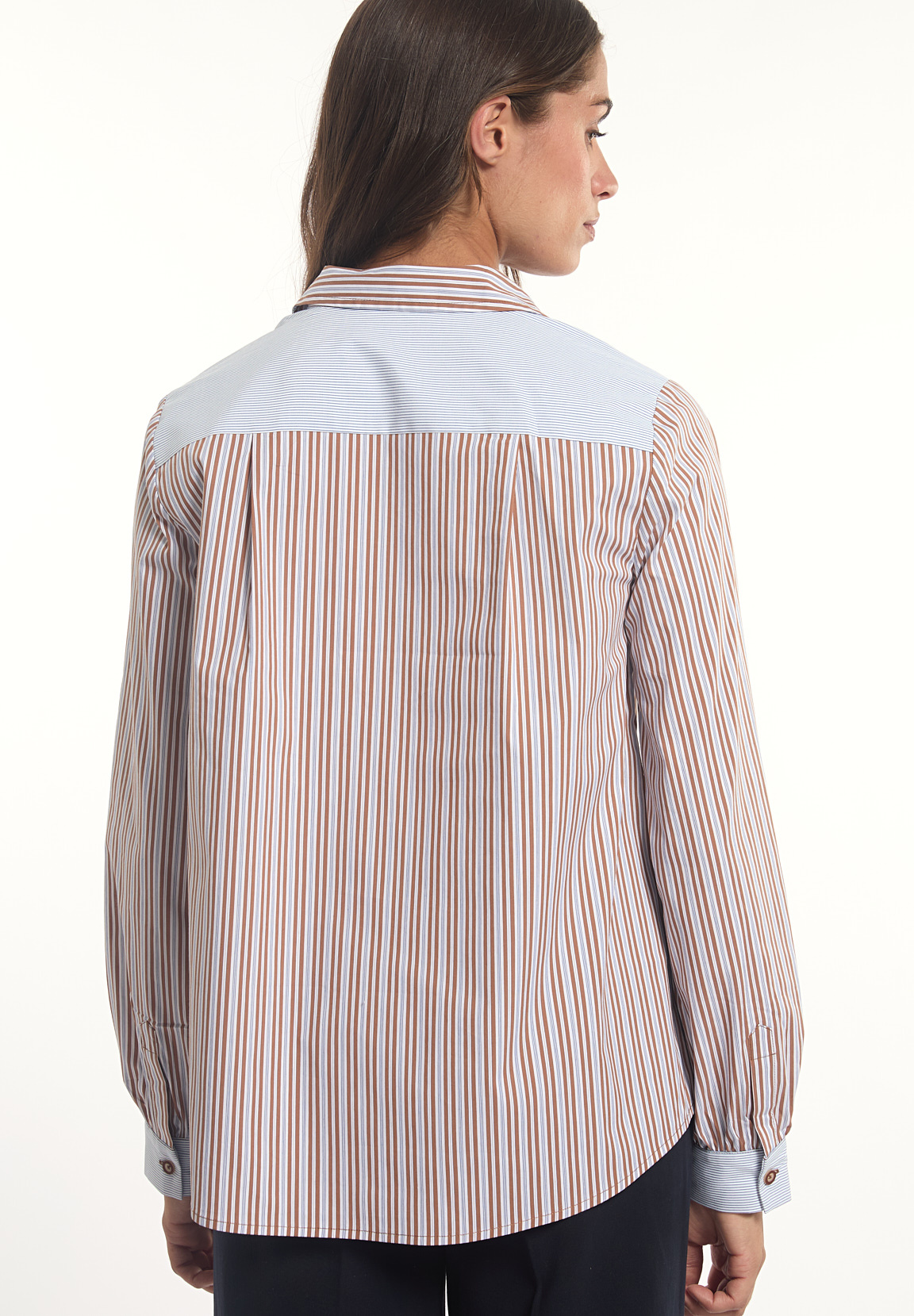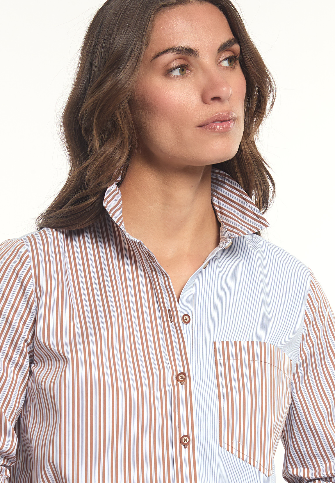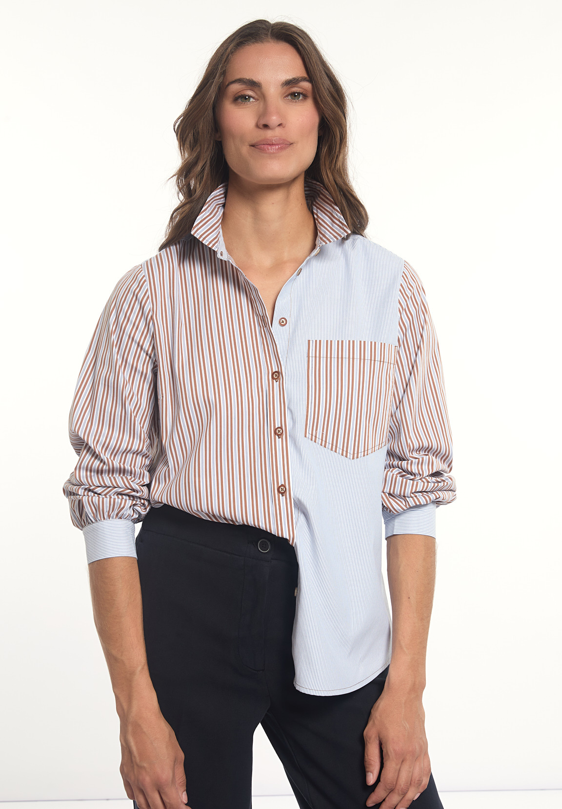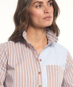River Woods Women’s Cotton Loose Striped Blouse Chest Pocket Blue/brown | Multi