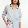 River Woods Women’s Cotton Loose Striped Blouse Chest Pocket Blue/brown | Multi