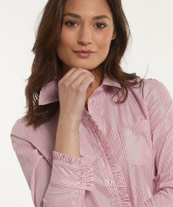 River Woods Women’s Cotton Striped Glitter Blouse Chest Pocket Red/pink | Pink