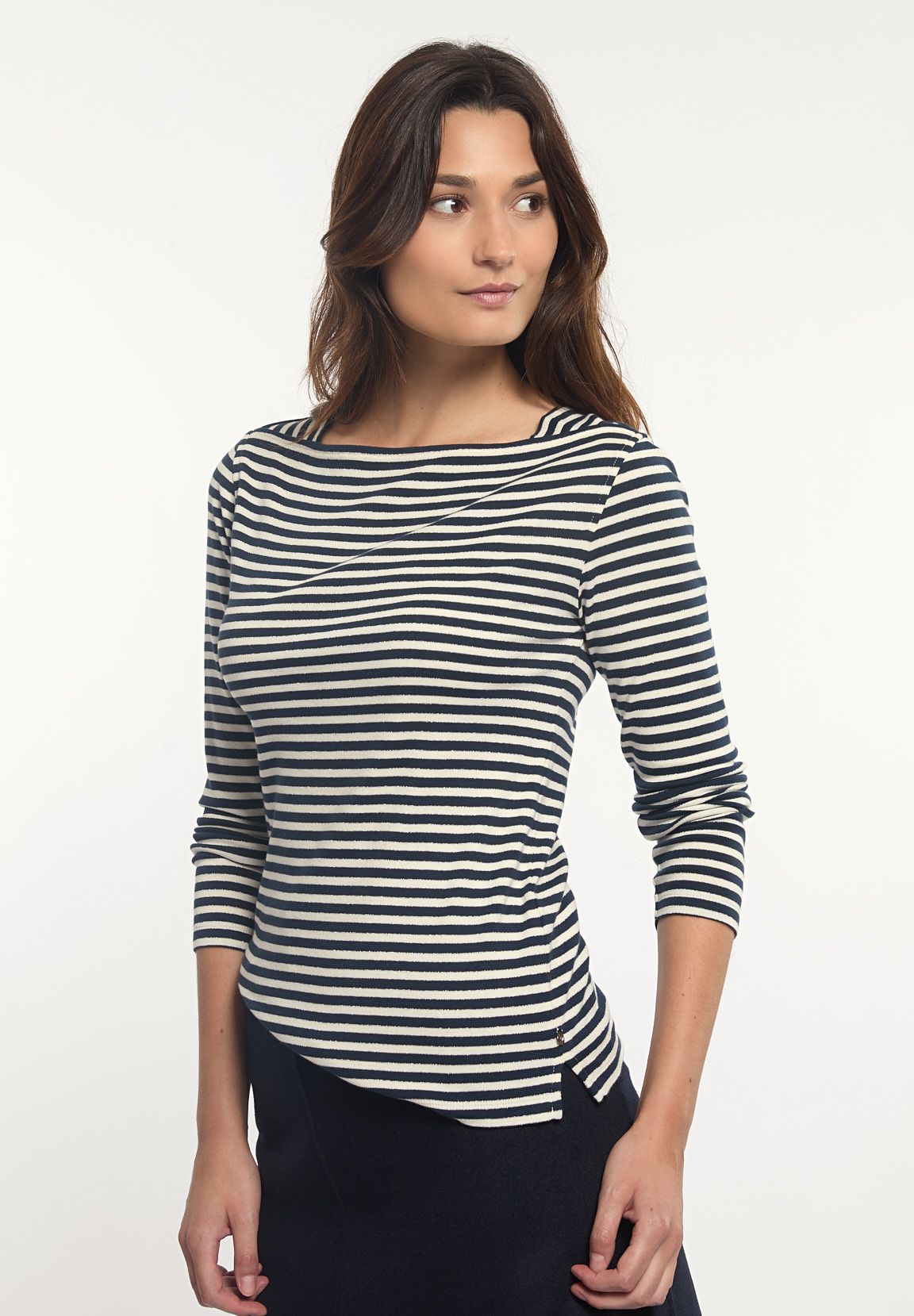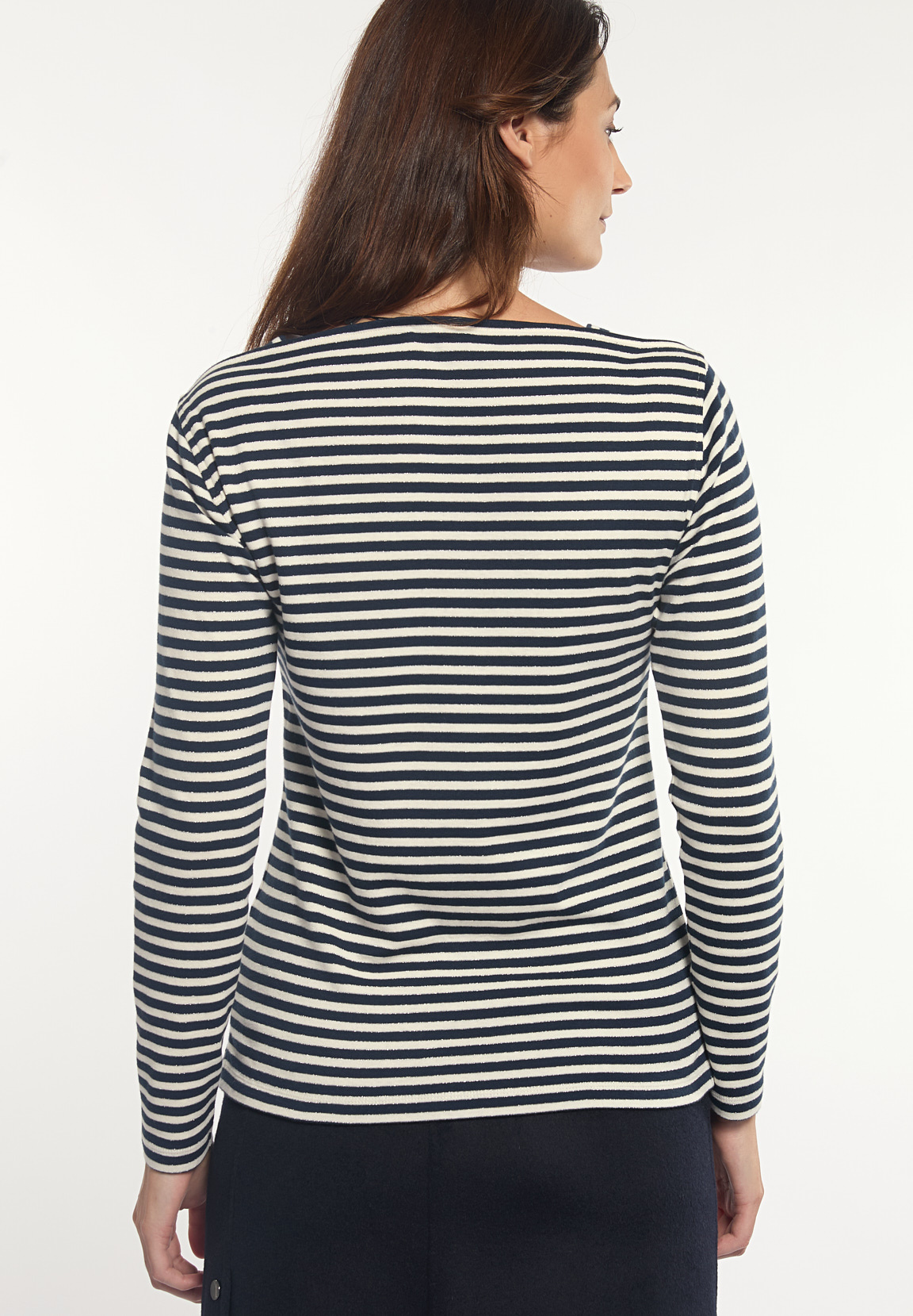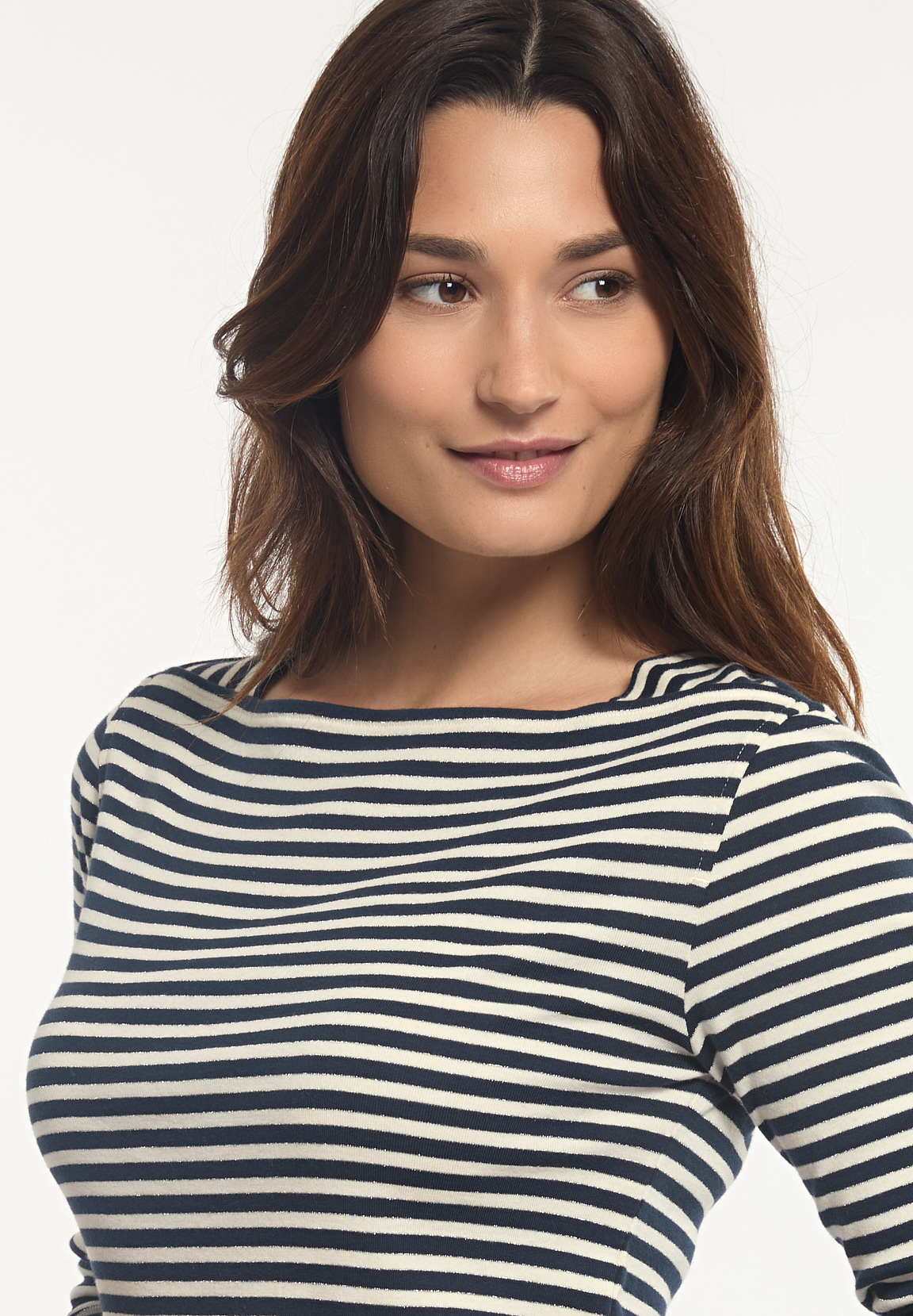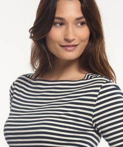 River Woods Women’s Cotton Striped Glitter Boat Neck T-shirt Cream/blue | Blue