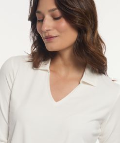 River Woods Women’s Cotton V-neck Polo T-shirt White | White