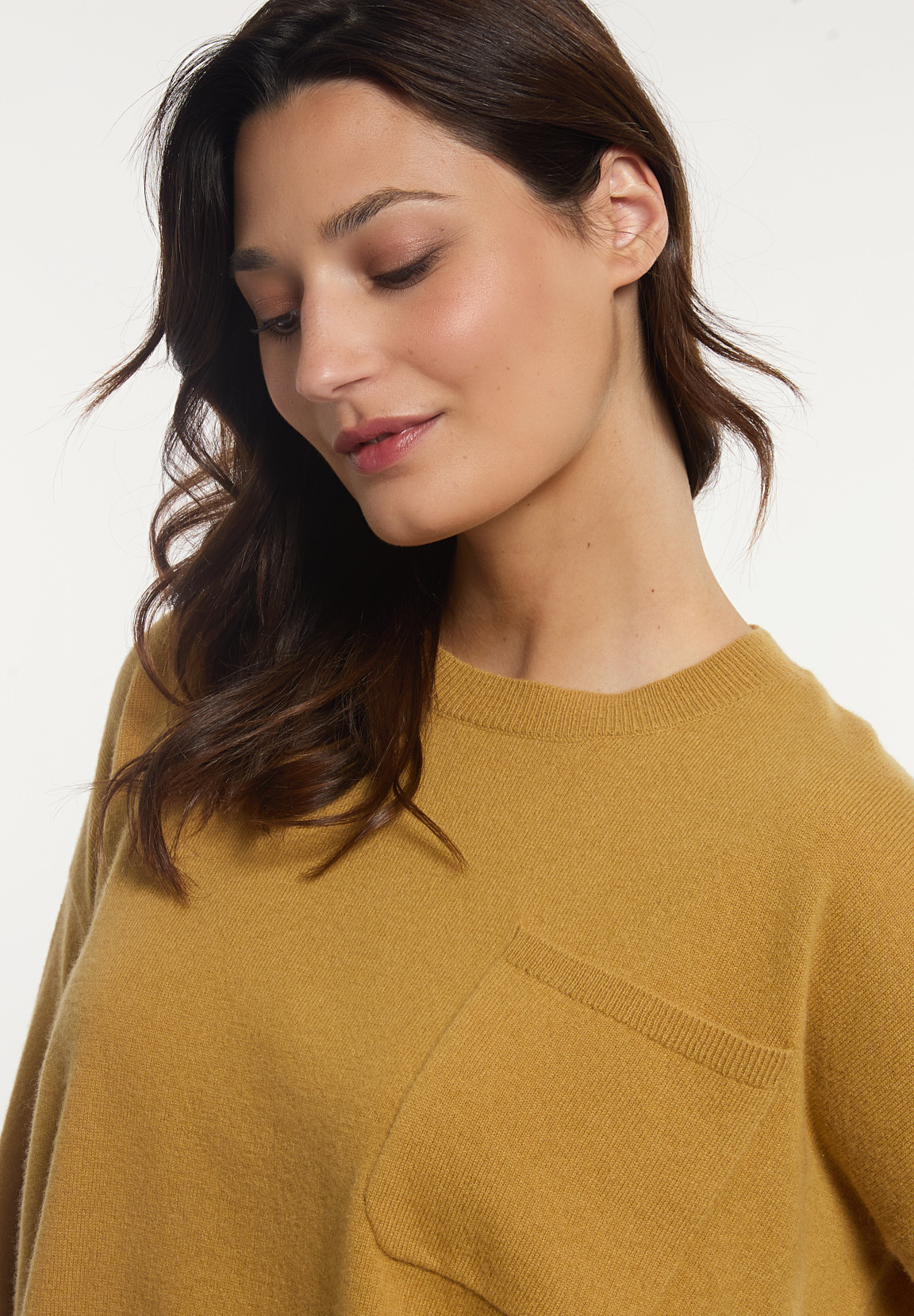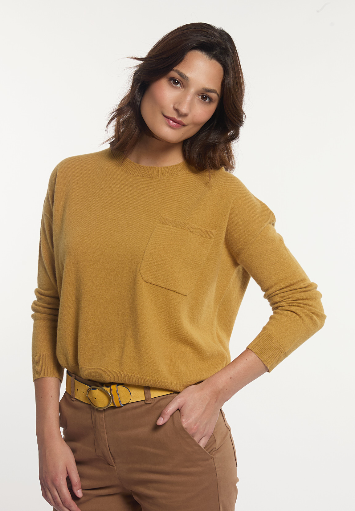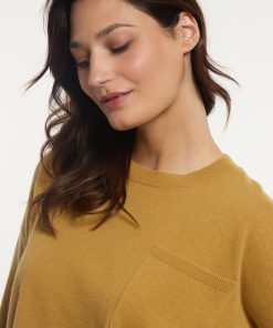 River Woods Women’s Merino Wool Basic Crew Neck Sweater Chest Pocket Yellow | Yellow