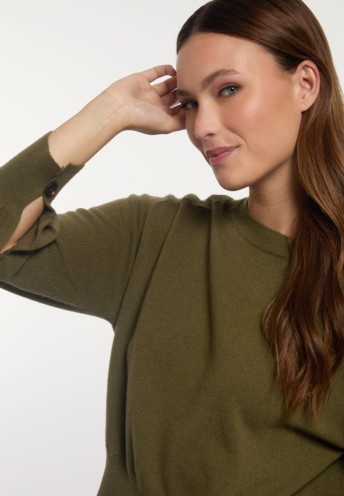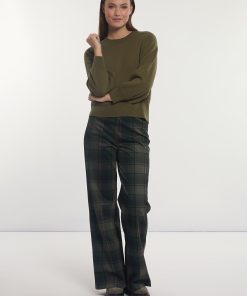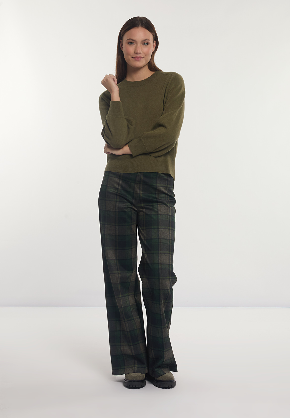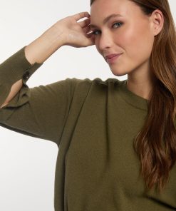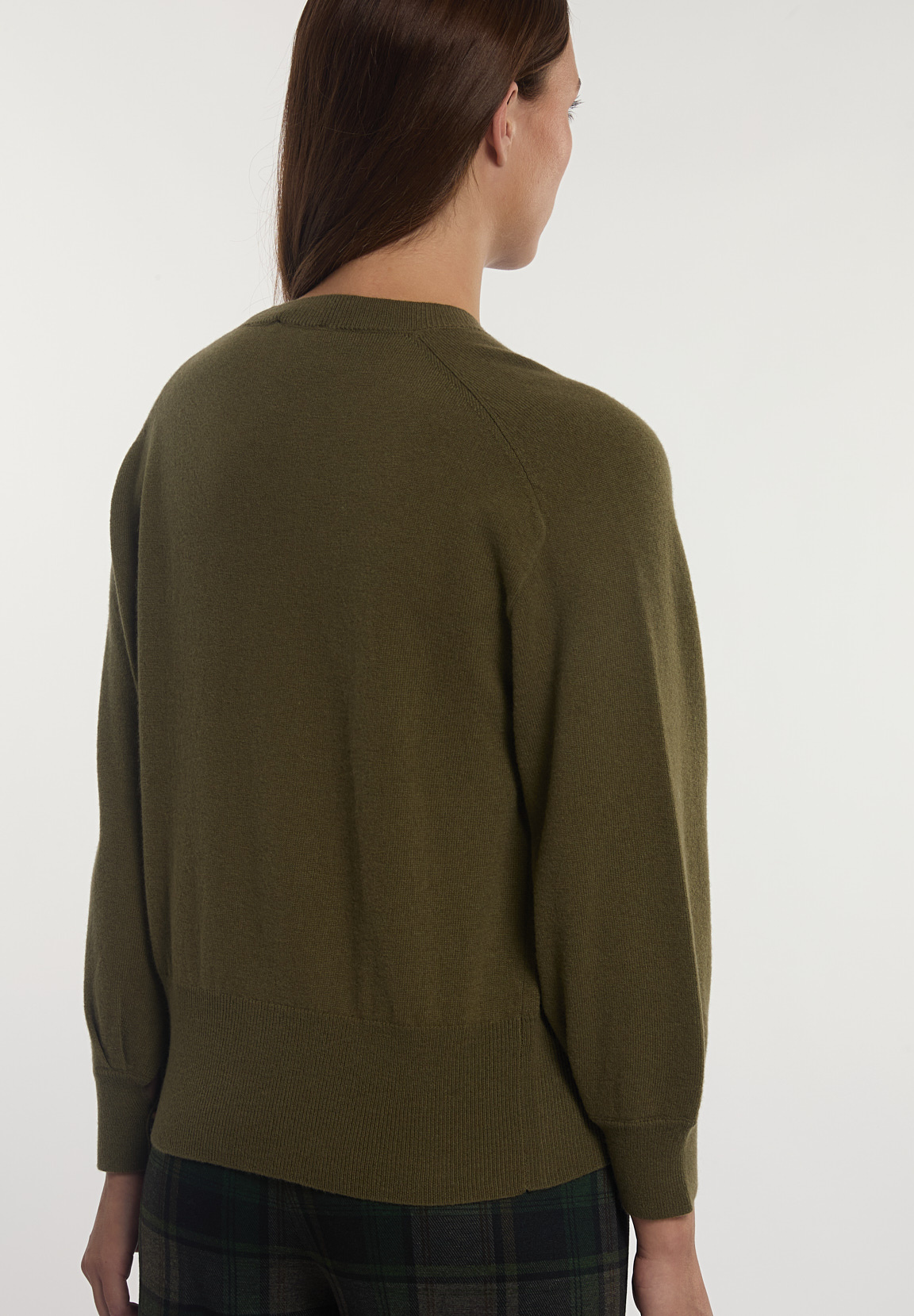 River Woods Women’s Merino Wool Crew Neck Sweater Fancy Sleeves Green | Green