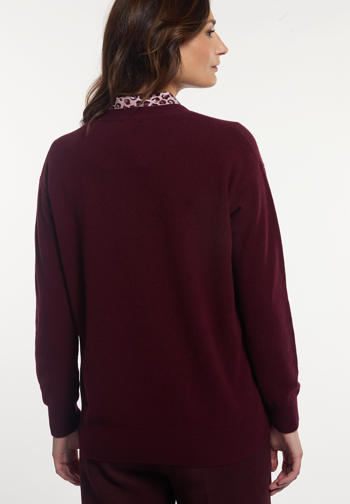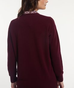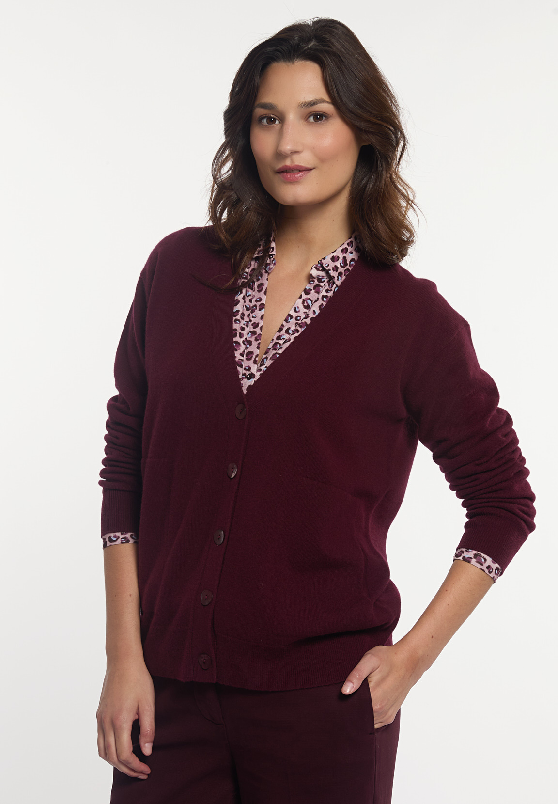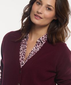 River Woods Women’s Merino Wool Loose V-neck Cardigan Applied Pockets Bordeaux | Red