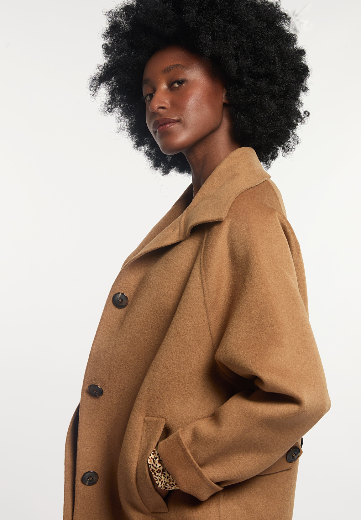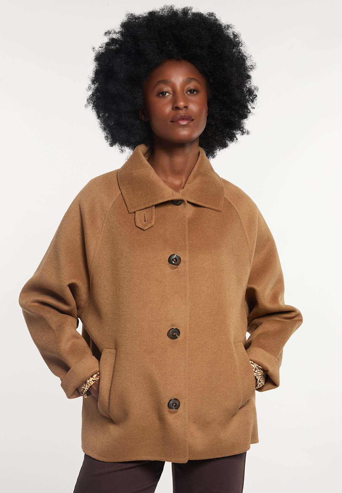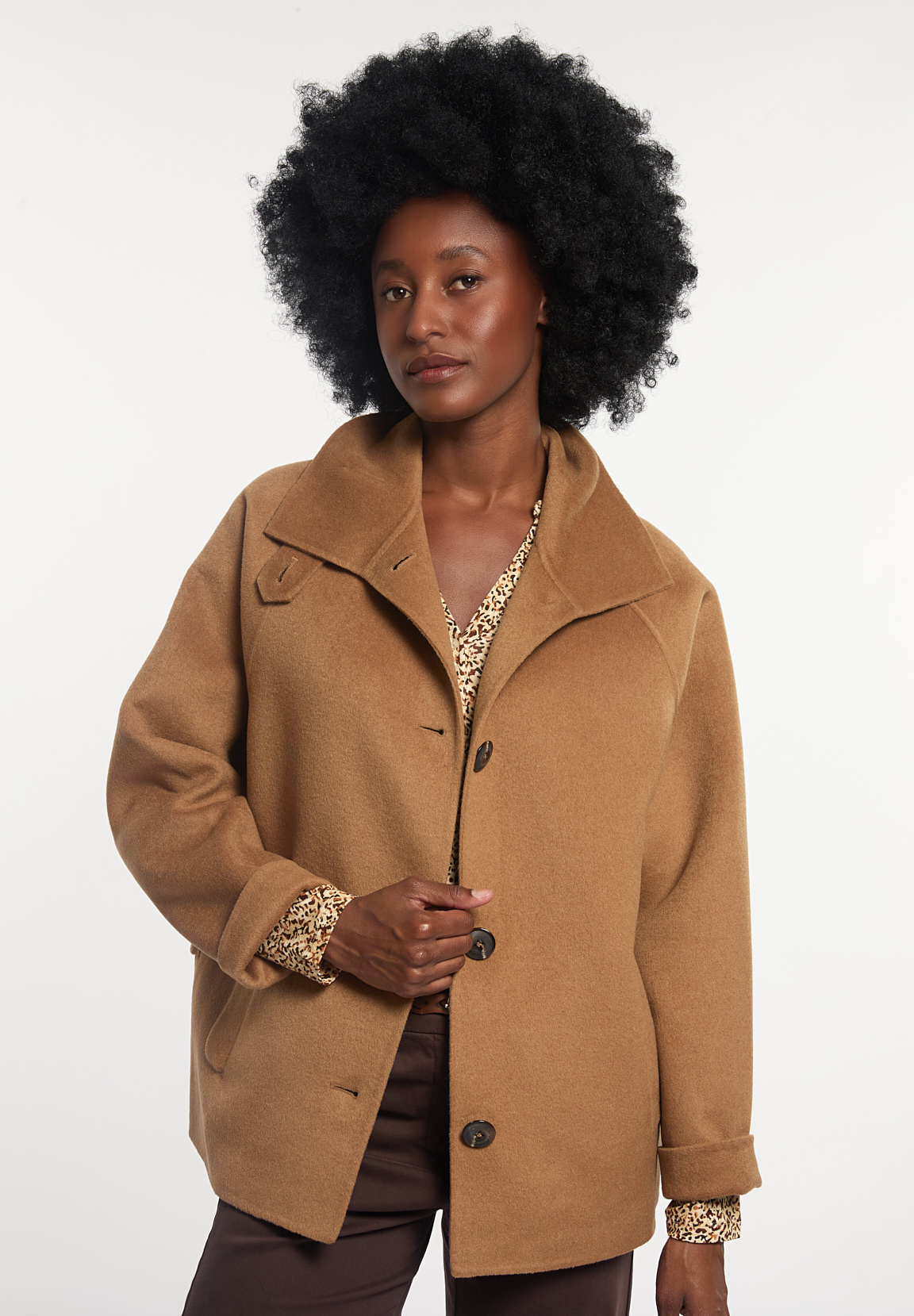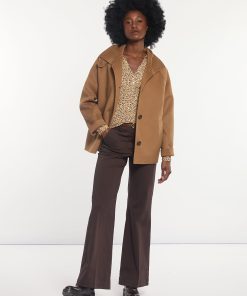 River Woods Women’s Woolen Short Buttoned Coat Camel | Brown